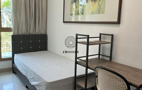This single room is bright, clean, and tastefully furnished with a single-size bed, study desk with chair, and a wardrobe for ample storage.