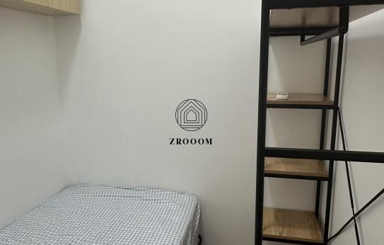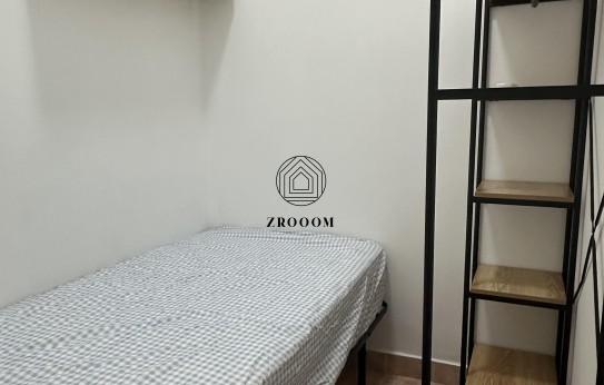 It comes furnished with an air-conditioner, a standard single-size bed, a wall-mounted built-in cabinet, and a good-size open wardrobe for storage.