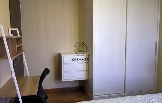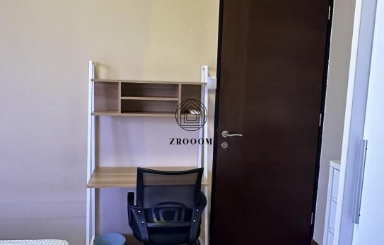Enjoy a spacious, fully furnished room with premium amenities, including a queen bed, personal fridge, large wardrobe, study area, and shared bathroom with bathtub, all in a well-connected co-living apartment.