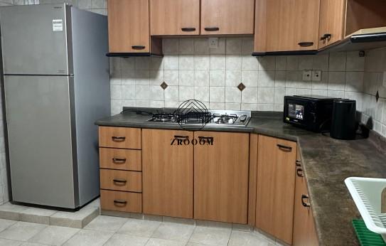 Residents share the apartment’s common facilities. The kitchen is equipped with essential appliances including a cooking stove, large shared refrigerator, microwave oven, and electric kettle, making it convenient for everyday meal preparation. A washer and dryer are also provided in the apartment for residents’ laundry needs.