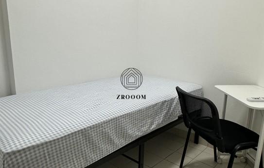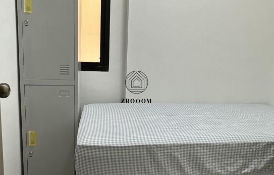 The room is compact and practical, suitable for a single occupant who prefers a simple and economical living option. It is air-conditioned and comes with windows, allowing natural light and ventilation. The room is furnished with a standard single size bed, locker cabinet for personal storage, and a desk with chair, creating a functional space for rest, work, or study.