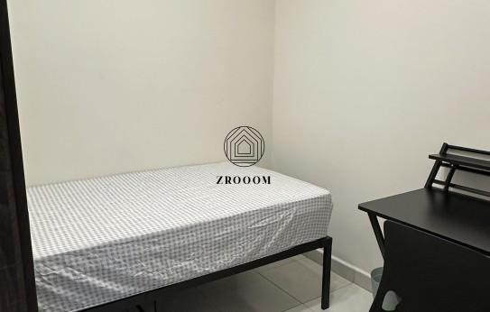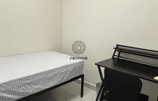 The room is air-conditioned and fully furnished with a single-size bed, study desk with chair, and wardrobe, providing a practical and comfortable living space suitable for rest, study, and everyday living.