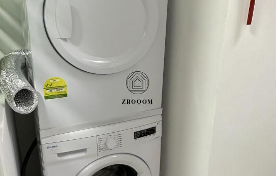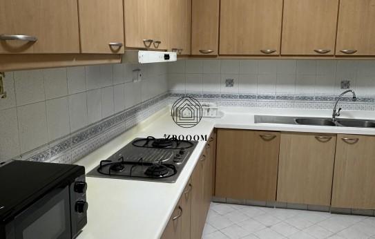 This single bedroom is furnished with single size bed with bed side table, study desk with chair and wardrobe.